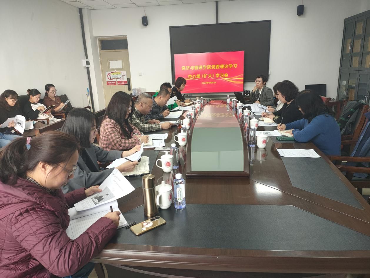 11 月 20 日,yl23455永利集团在腾飞楼A307召开党委理论学习中心组(扩大)学习会议,集中学习习近平文化思想和“两个结合”的深刻内涵。会议由学院党委书记张永强主持,中共东河区委党校、学院党委理论学习中心组成员以及学院党支部书记等参加学习。