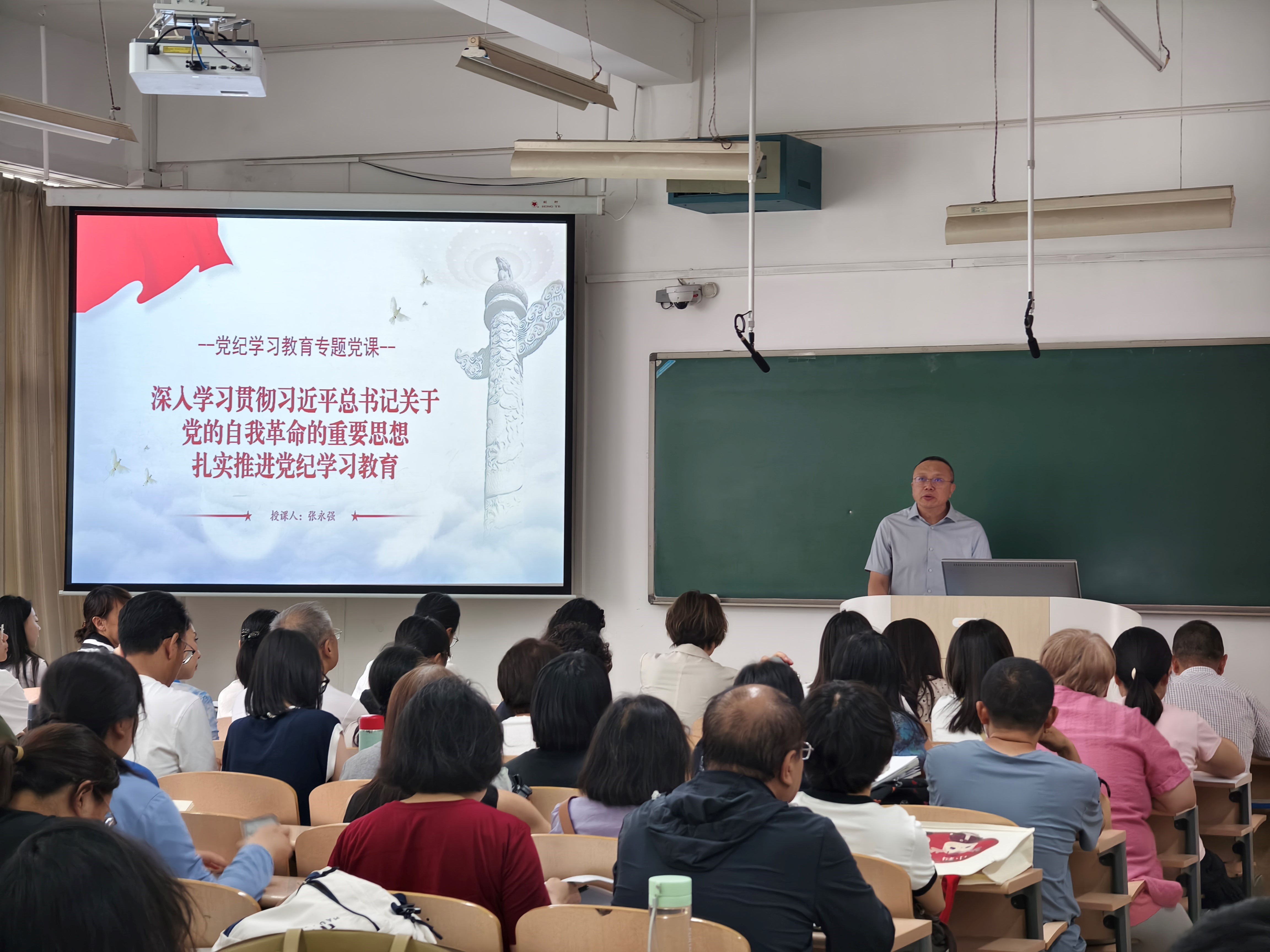6月20日,yl23455永利集团党委书记张永强在主教E107以《深入学习贯彻习近平总书记关于党的自我革命的重要思想 扎实推进党纪学习教育》为题讲授党纪学习教育专题党课。学院130余名师生党员听取了党课。