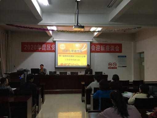2019年12月30日,经管学院在腾飞楼A413召开第三届第四次教职工代表大会暨工会会员代表大会。本次大会共出席代表28人,审议通过了《院长工作报告》、《学院财务报告》、《yl23455永利集团2019年度年终业绩分配方案》、《工会工作报告》,并对会前征集的有关提案进行了回复说明。