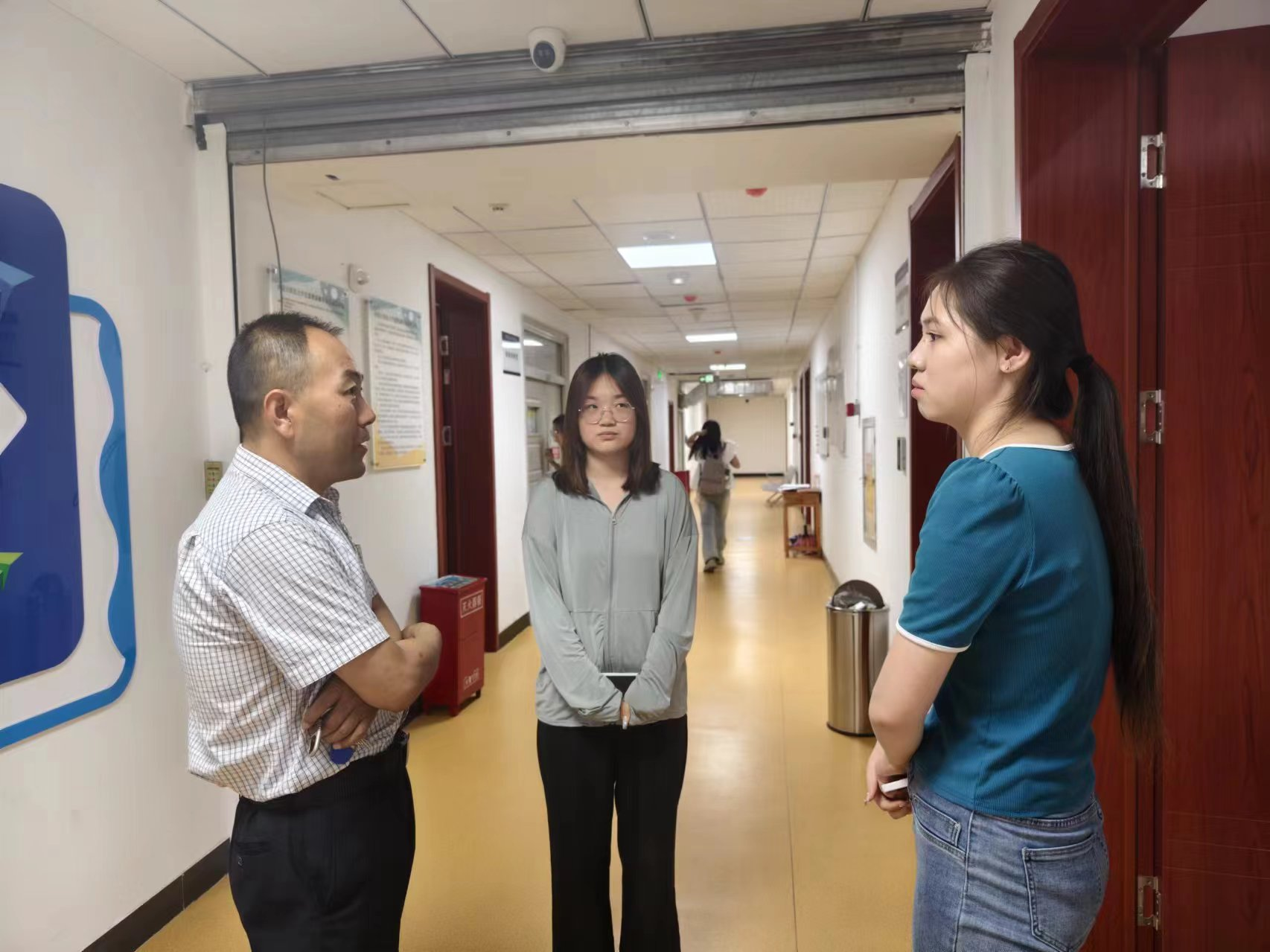 6月20日上午,学院副院长赵周华、孙斌及教学办公室主任李彤彤组成教学检查工作小组,走进教学楼,深入课堂一线,检查了理论课和实践课的教学运行和学生学习情况。赵周华副院长在课间对学生进行访谈,了解任课教师备课、授课形式、课堂纪律管理等情况。从检查的整体情况来看,教学秩序良好,课堂秩序井然,任课教师准备充分,按时到岗,学生出勤良好,但“前排率”低、“抬头率”低、后排学生看手机的问题仍普遍存在。