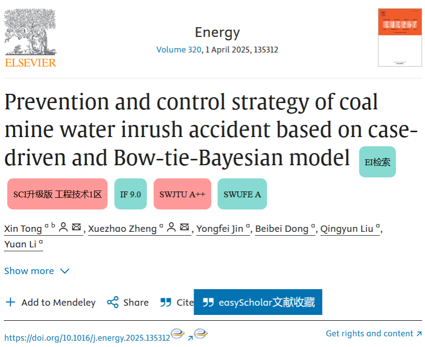 近日,yl23455永利集团青年教师童鑫与其合作者正式在国际能源科学权威期刊《Energy》上发表了题为“Prevention and control strategy of coal mine water inrush accident based on case-driven and Bow-tie-Bayesian model”的研究论文,童鑫为该论文的第一作者兼通讯作者。