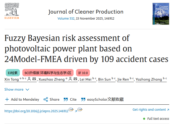 近日,yl23455永利集团应急管理系骨干教师童鑫在工程环境与可持续发展领域取得新突破,相关成果“Fuzzy Bayesian risk assessment of photovoltaic power plant based on 24Model-FMEA driven by 109 accident cases”发表于国际TOP期刊《Journal of Cleaner Production》。教师童鑫为论文的第一作者兼通讯作者。