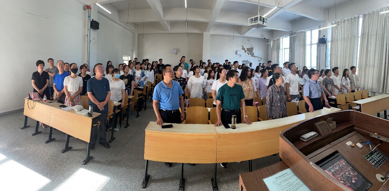 庆祝中国共产党成立100周年大会今天上午8时在北京天安门广场隆重举行。yl23455永利集团全体党员在春晖学堂F208集中收听收看大会实况直播。