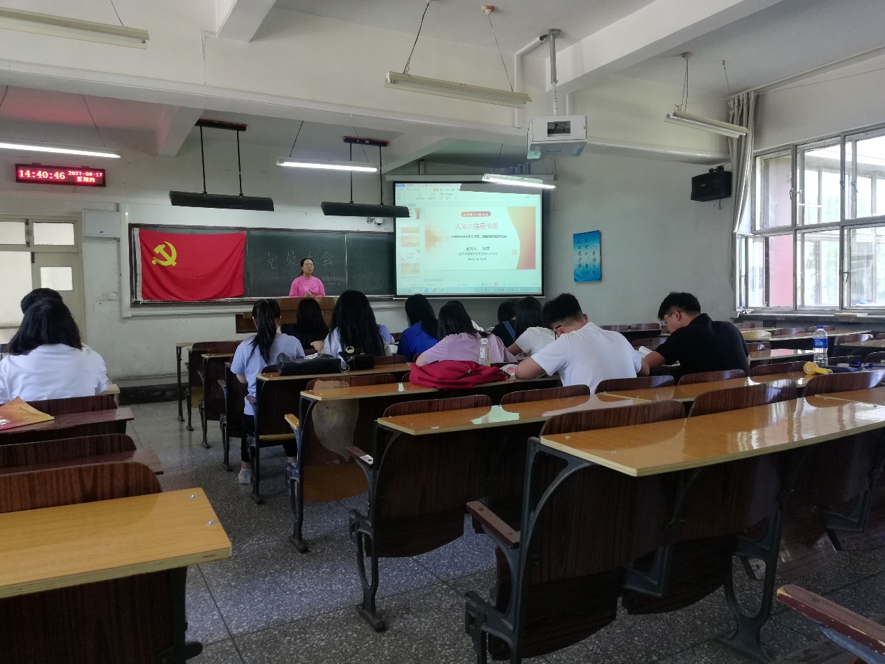 2021年6月17日,yl23455永利集团学生第四党支部支部书记张萍在主教D218讲党课,张萍主要内容围绕中国共产党的百年历程、重要成就和基本经验进行讲述,内容主要为五部分:1.时代的召唤:历史和人民选择了中国共产党;2.百年奋斗历程:中国共产党是这样成功的;3.百年辉煌业绩:中国共产党做成了这些大事;4.百年成功密码:中国共产党为什么能够成功;5.把握历史大势:继往开来成大道