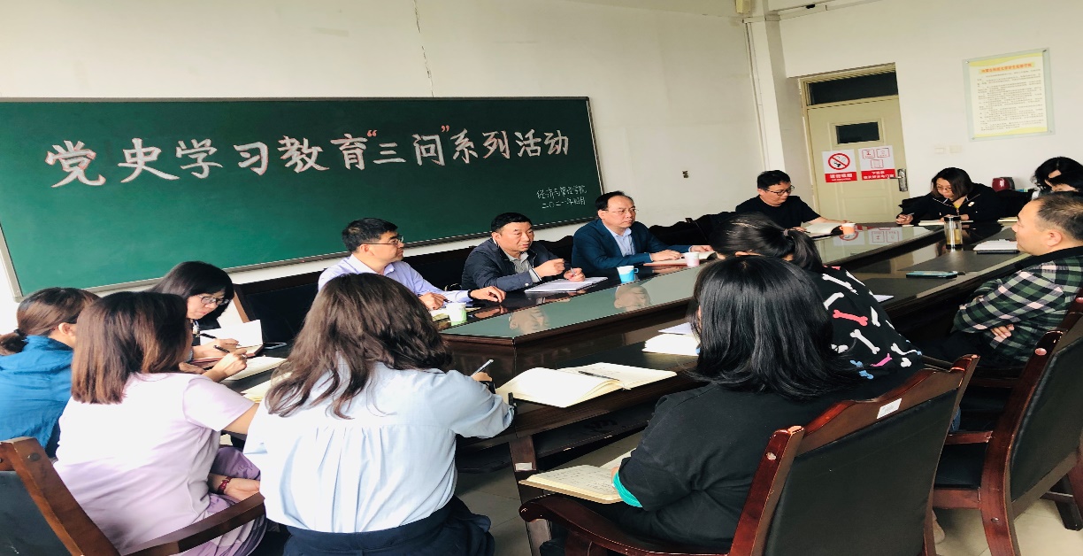调研活动围绕着党史学习情况、学校各方面工作存在的问题、纪检监察工作存在的问题等三个主题展开。学院纪检委员、教工第一党支部书记闫宝成汇报了党史学习情况。教师们针对人才引进、实验室建设、教学任务、学生就业等方面,提出了“急难愁盼”的具体问题,并围绕着教师评价体系、岗位聘任、年终绩效考核、学校日常管理等方面展开了讨论,为学校和学院高质量发展建言献策。