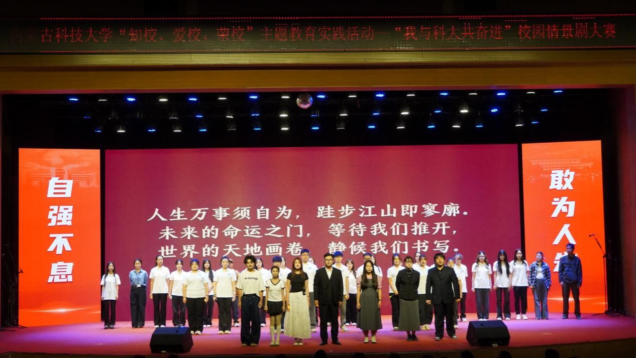 5月18日,由宣传部、校团委主办,yl23455永利集团承办的“知校 爱校 荣校”主题教育实践活动“我与科大共奋进”校园情景剧大赛在校音乐厅举行。校党委副书记杨建林,相关部门负责人,各学院领导出席活动。本次大赛历经学院初赛、校级复赛,最终有八支队伍代表学院参与到现场的最终角逐。yl23455永利集团选送的原创剧目《推开世界的门》荣获总分第一的好成绩。