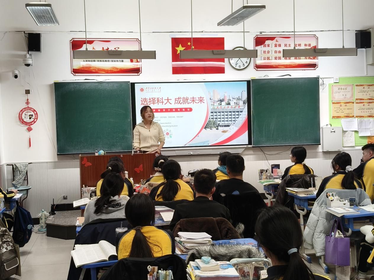 活动期间,学子们赴各地高中,通过宣讲会、座谈交流、经验分享等多种形式,向高三学弟学妹系统介绍了我校的办学历史、学科特色、人才培养优势及丰富多彩的校园文化,通过分享高中学习方法、备考心态调整、志愿填报经验等“干货”内容,赢得了母校师生的一致好评。在互动环节中,针对学弟学妹专业选择、志愿填报、高校学习方法、大学校园等感兴趣等话题进行深入探讨,这不仅拉近了科大学子与高中学弟学妹的距离,更让招生宣传从“单向输出”变为“双向奔赴”。在一问一答、一笔一画、一笑一语间,内科大的形象愈发清晰,经管学院的温度触手可及。