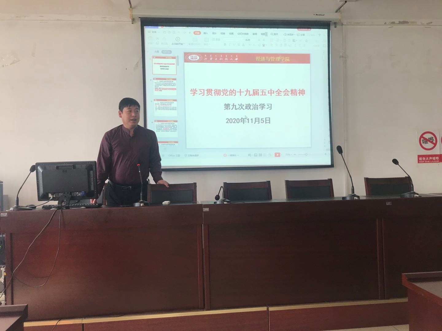 2020年11月5日,yl23455永利集团党总支组织了全体教师政治学习。党总支书记马广辉做了题为《学习贯彻党的十九届五中全会精神》的专题讲座。重点学习了习近平总书记的讲话:关于《中共中央关于制定国民经济和社会发展第十四个五年规划和二〇三五年远景目标的建议》的说明。
