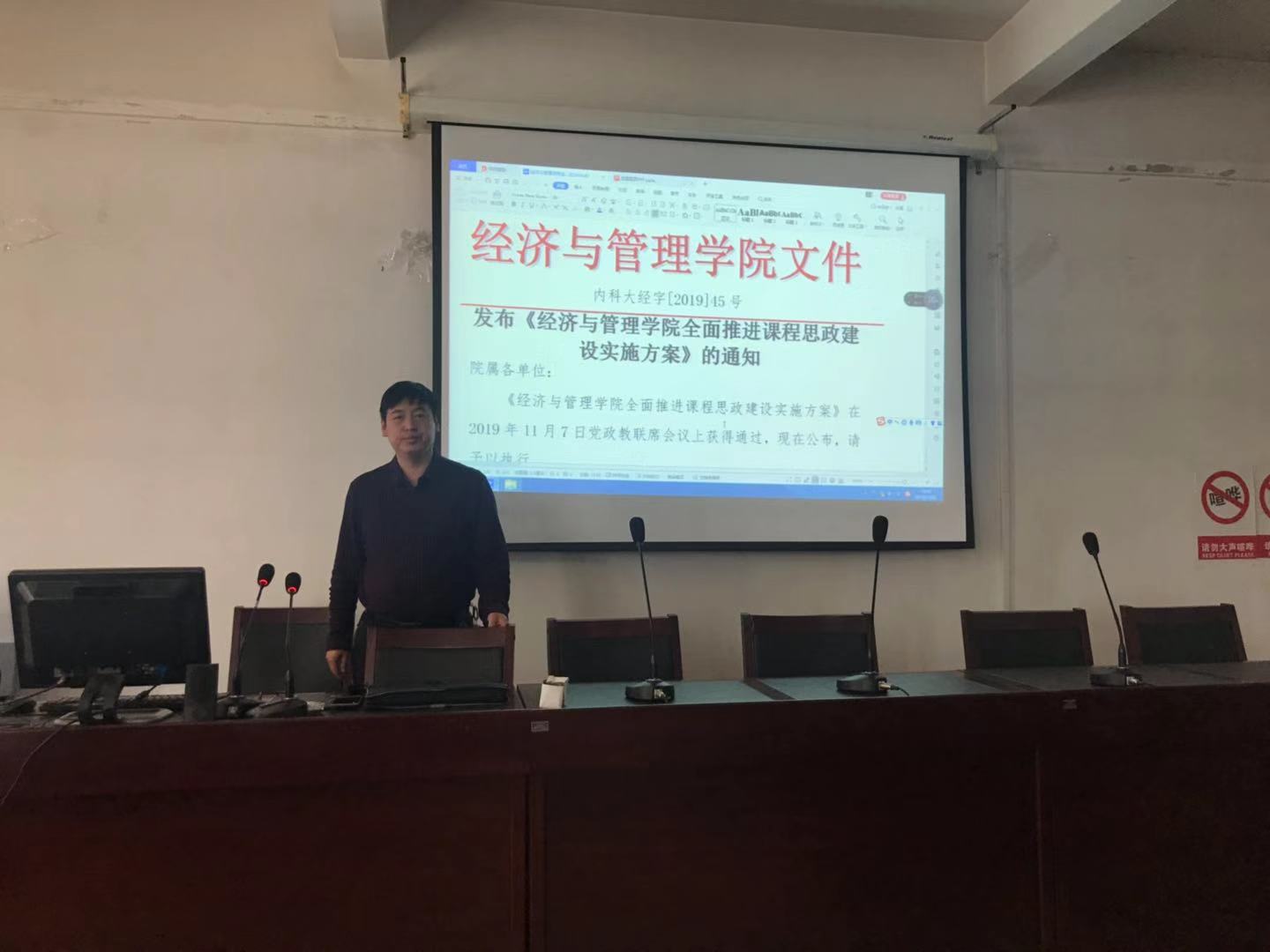 2019年11月21日下午,yl23455永利集团党总支组织全院教职工在腾飞楼A413政治理论学习,会议学习了《yl23455永利集团全面推进课程思政建设实施方案》。
