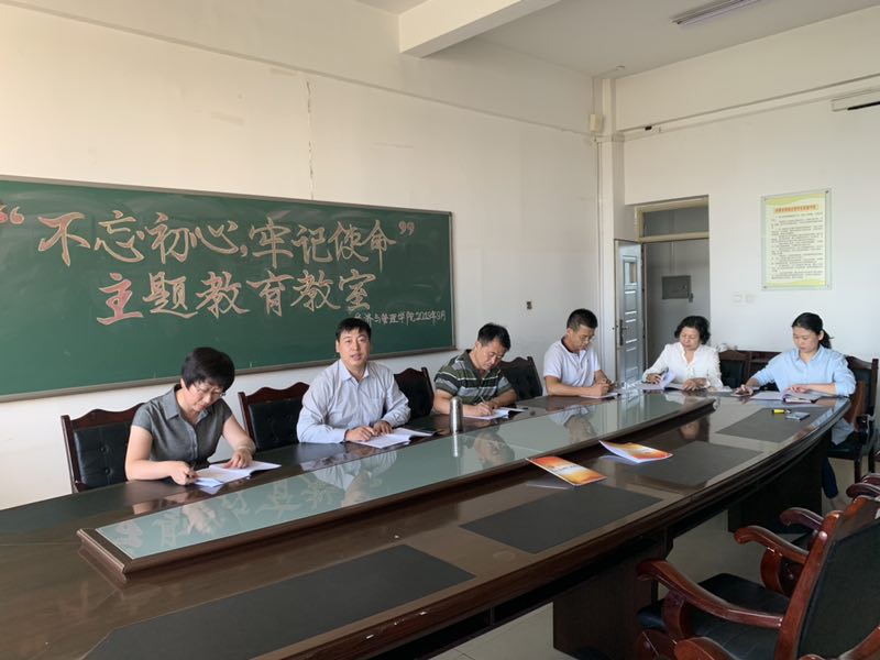 2019年9月24日下午,yl23455永利集团在腾飞楼A307组织了“不忘初心、牢记使命”主题教育集中学习,党政教领导班子成员参加了学习。学习会上,党总支书记马广辉同志介绍了本次集中学习的重要性,公布了每天作息时间表,启用考勤机进行签到签退考核。24日下午的学习内容包括:图解“不忘初心、牢记使命”主题教育工作部署、“不忘初心、牢记使命”主题教育总结要求的四个维度、第二批“不忘初心、牢记使命”主题教育指导意见。