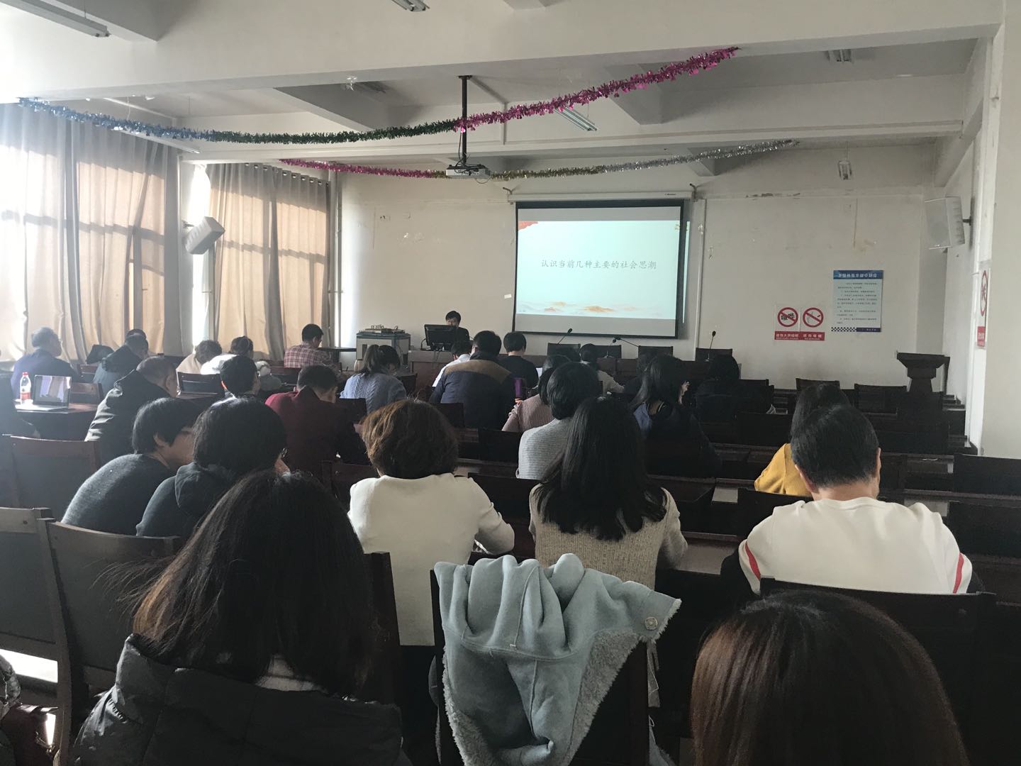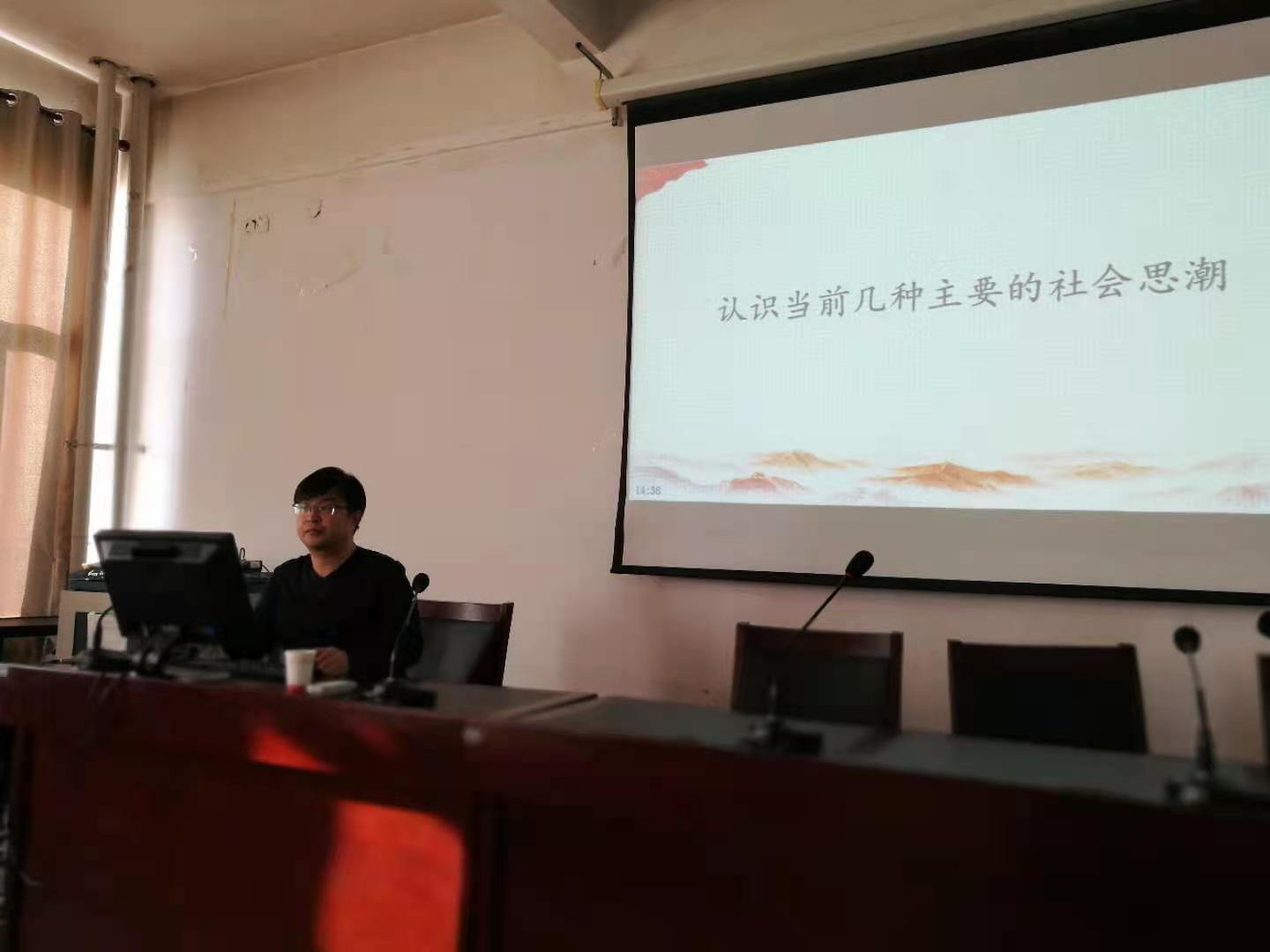 根据党委宣传部(新闻中心)发布的《关于2020年—2021学年秋学期学校新时代讲习团开展集中宣讲的通知》,yl23455永利集团于2020年12月31日在腾飞楼A413组织习近平新时代中国特色社会主义思想宣讲大会。学院党总支邀请了党委宣讲团成员,文法学院闫金山老师为我院全体教师进行宣讲,宣讲题目是《认识当前几种主要的社会思潮》。