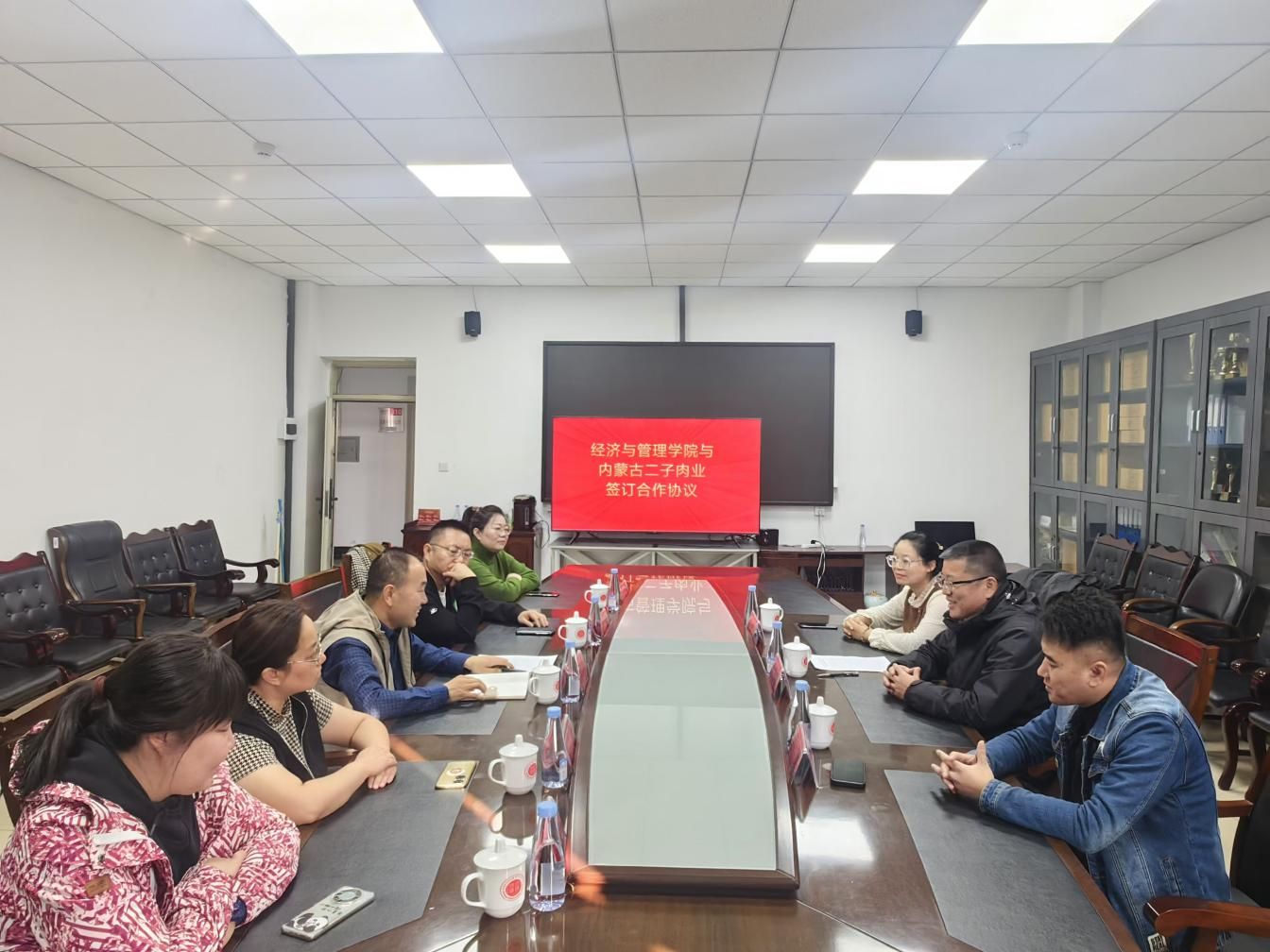 2024年11月6日上午,内蒙古二子肉业集团有限公司与yl23455永利集团在腾飞楼A座307举行社会实践与就业合作框架协议签订仪式。二子肉业集团有限公司研发中心主任程孝新、销售部经理白璐、人事行政主管孙梦娜,yl23455永利集团院长赵周华、副院长孙斌,相关专业负责人及教师参加活动。