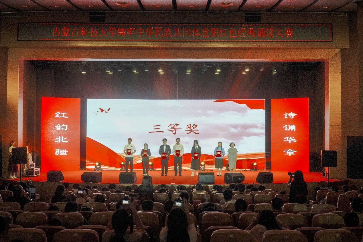 近日,永利y23455“红韵北疆 诗诵华章”铸牢中华民族共同体意识红色经典诵读大赛在校音乐厅举办。经过初赛、复赛层层选拔,共有11支队伍进入校级决赛。我院2024级营销管理本科生杜文洁、张涛,2024级应用经济学研究生徐美彤分别获得一等奖、三等奖。
