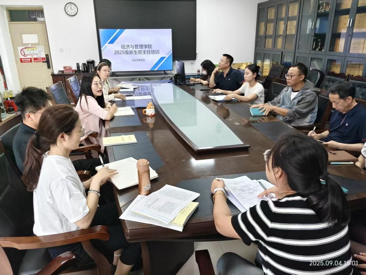 9月4日下午,学院在腾飞楼A307会议室举办2025级新生班主任培训会。副书记田芳、副院长孙斌,全体辅导员、新生班主任参加会议。