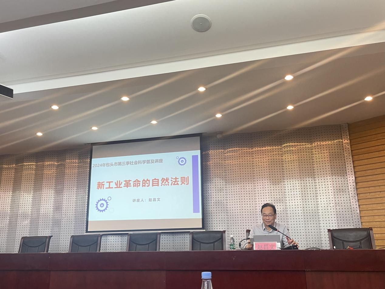 6月27日,我院邀请北京市社科联副主席,中山大学吴小兰讲席教授,岭南学院教授、博士生导师,中山大学国家发展研究院院长赵昌文教授,以《新工业革命的自然法则》为题作专题讲座。包头市社科联党组书记、主席、市社科院院长梁义光主持。北京市社科联、自治区社科联、包头市社科联及我院师生共计150余人参加本次讲座。