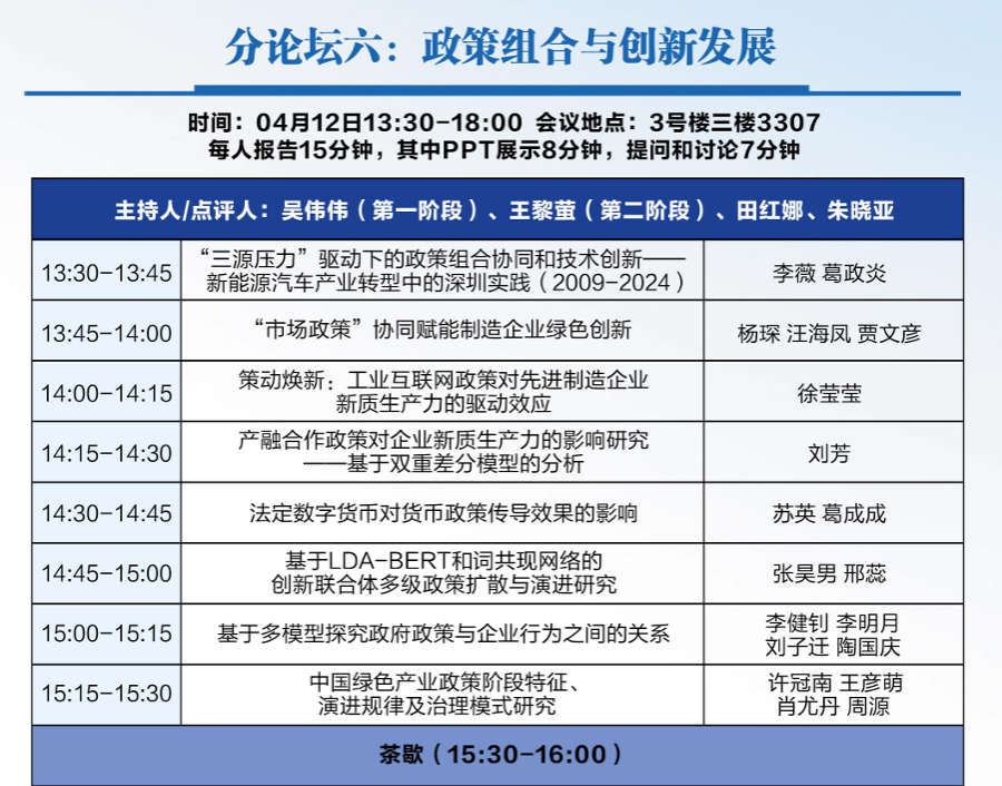 2025年4月12日至13日,以“数智创新与战略转型:理论、实践与政策”为主题的第三届中国创新发展政策与管理年会在广州举行。本届年会由中国科学学与科技政策研究会主办,中国科学学与科技政策研究会创新与发展政策专委会、广东工业大学管理学院、粤港澳大湾区人才发展战略研究院、广东工业大学创新理论与创新管理研究中心、中国科学学与科技政策研究会数字创新与管理专委会联合承办,中国科学学与科技政策研究会理事长、中国科学院创新发展研究中心主任穆荣平担任大会主席,中国科学学与科技政策研究会副秘书长、中国科学院大学特聘教授陈凯华和广东工业大学管理学院院长吴小节教授担任大会学术委员会联合主席。年会吸引了全国近200所高校和科研机构的500余名创新领域学者及师生参会。 年会设置了13场主旨报告、15个平行分论坛和6家期刊见面会。在期刊见面会上,《管理世界》《南开管理评论》《科研管理》《科学学研究》《管理评论》《Innovation and Development Policy》等期刊的代表与参会学者展开深入交流,详细解读期刊的办刊理念、选题方向及投稿规范,为学者们提供了宝贵的学术发表指导。 平行论坛环节,讨论涵盖数智创新与转型、创新发展的中国模式、创新网络与创新生态系统、关键核心技术突破、科技创新政策与平台支撑、政策组合与创新发展、创新链人才链与产业链融合发展、数智赋能战略转型、数智赋能产业高质量发展、数绿协同创新发展、数智人才发展与创新、数据要素市场化与伦理治理、数智化与治理体系现代化等前沿议题。 我院2023级应用经济学专业硕士研究生杨琛同学的论文入选此次论坛,并受邀在“政策组合与创新发展”分论坛发言。 学术会议是展示研究成果、交流新思想和建立专业联系的绝佳平台。通过参与学术会议,同学们有机会深入了解自己研究领域的最新动态和学术前沿,这不仅能够启发研究思路,还能增长学术见识。 我院高度重视研究生科研创新能力培养,并致力于营造积极向上的学术环境,以促进永利集团质量的持续提升。我院努力营造积极的学术氛围,鼓励并支持研究生积极参与国内外高水平学术会议,支持研究生们的成长和发展,期望研究生们在学术探索的道路上不断进步,实现自己的学术梦想!