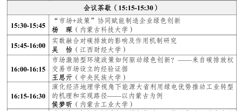 2025年6月14日,由中国区域经济学会和内蒙古财经大学主办,内蒙古财经大学资源与环境经济学院、内蒙古生态经济研究会和中国社会科学院西部发展研究中心承办的“绿色低碳转型赋能区域高质量发展学术研讨会”在内蒙古自治区呼和浩特市成功举办。我院2023级应用经济学专业硕士研究生焦桂萍、杨琛同学,2023级管理科学与工程专业硕士研究生王明慧同学的论文入选此次论坛,并受邀分别在生态保护与绿色低碳发展、双碳目标下生态治理与绿色发展转型分论坛发言。 学术会议是展示研究成果、交流新思想和建立专业联系的绝佳平台。通过参与学术会议,同学们将有机会深入了解自己研究领域的最新动态和学术前沿,这不仅能够启发的研究思路,还能增长的学术见识。 学院致力于激发学生的学习热情,鼓励研究生们迈向更广阔的学术舞台,积极投身各类学术会议,展现交流学术成果。学院努力营造积极的学术氛围,支持研究生的成长和发展,期望研究生在学术探索的道路上不断进步,实现自己的学术梦想!