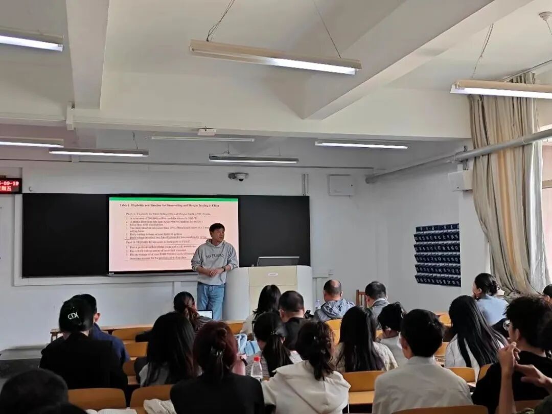 2025年9月19日,复旦大学孙谦教授应邀来到yl23455永利集团,就“卖空限制与股票收益预测”与师生们进行座谈交流和学术讲座,为师生们带来了一场精彩的学术盛宴。 讲座中,孙谦教授并未局限于理论阐述,而是结合具体研究案例,深入浅出地讲解了卖空限制对股票市场的影响。他通过实际数据和图表,分析了政策实施前后股票价格的变化,指出卖空限制会导致市场信息量减少,从而使短期股价预测能力下降。孙教授的分享为师生们提供了一个“如何从现实政策变化中发掘有价值研究课题”的完整范例 在互动环节,师生们踊跃提问。针对学生论文写作的困惑,孙教授精辟地指出“做研究是创造新知识”,强调了学术创新的本质。边璐老师进一步就量化投资、机器学习应用、机构与个人投资者行为差异等前沿话题,与孙教授进行了深入交流。 本次讲座不仅加深了师生对资本市场微观结构的理解,更是一堂生动的“研究方法论”大师课,为学院的学术研究与人才培养注入了新的动能。