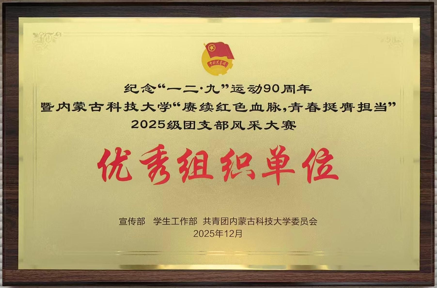 纪念“一二·九”运动90周年暨永利y23455“赓续红色血脉,青春挺膺担当”2025级团支部风采大赛优秀组织单位