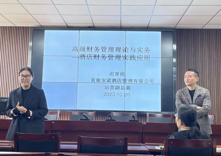本次讲座有幸邀请到了首旅安诺酒店管理有限公司运营副总裁迟育佳,讲座由我院工商管理系主任郝婷主持,参加本次讲座的还有苏利平教授、王晓红副教授、张芳卿副教授、昝玉文和尚丽花等教师以及2023级会计专硕研究生。